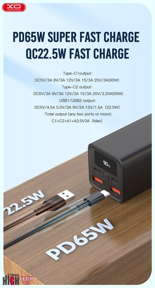 | 🎁 Contenu de la boîte | Power Bank XO PB97, câble USB-C 100W, manuel d’utilisation multilingue |