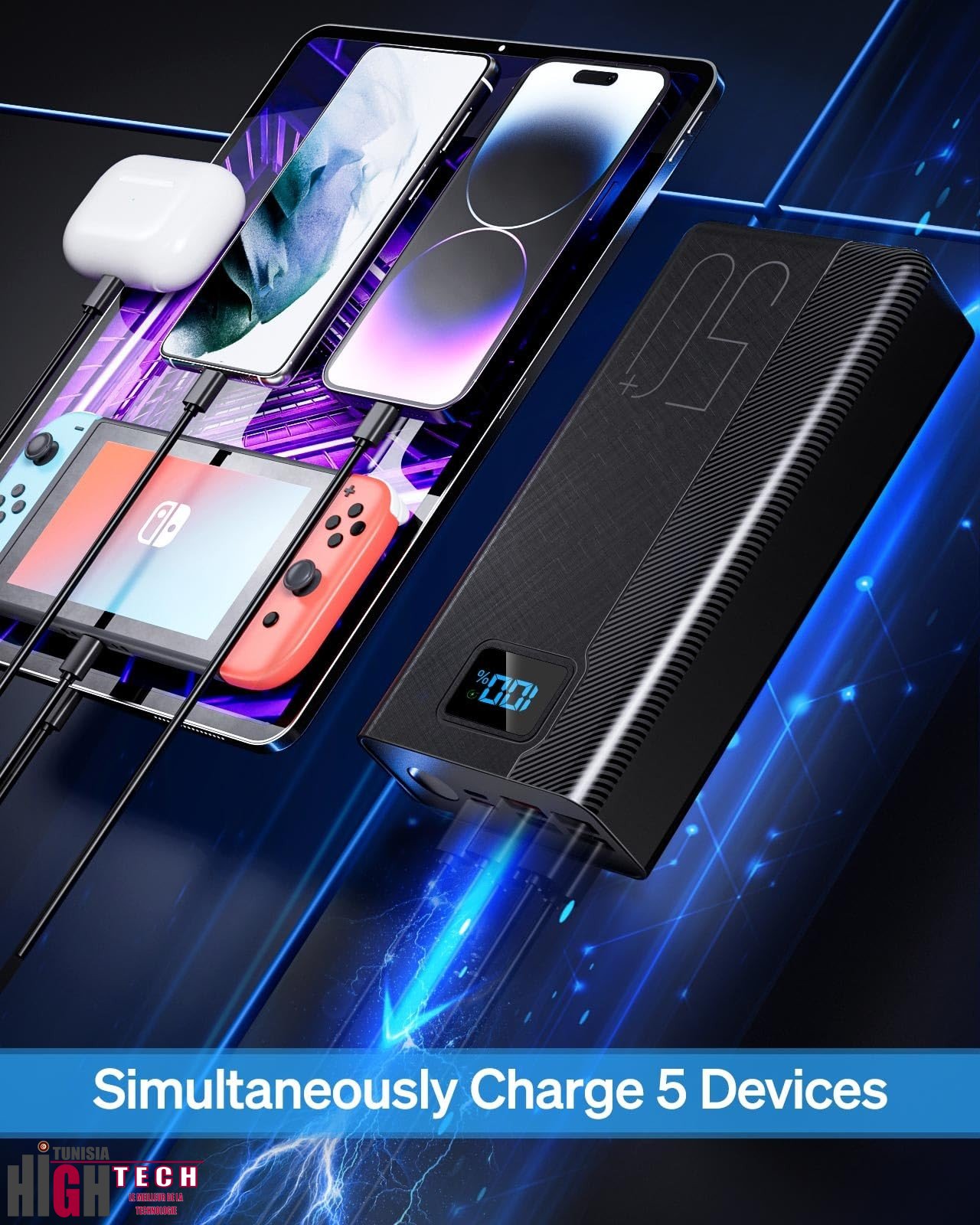 | 🔋 Capacité nominale | 50 000 mAh – idéale pour plus de 10 recharges complètes de smartphone ou plusieurs appareils lourds. |
