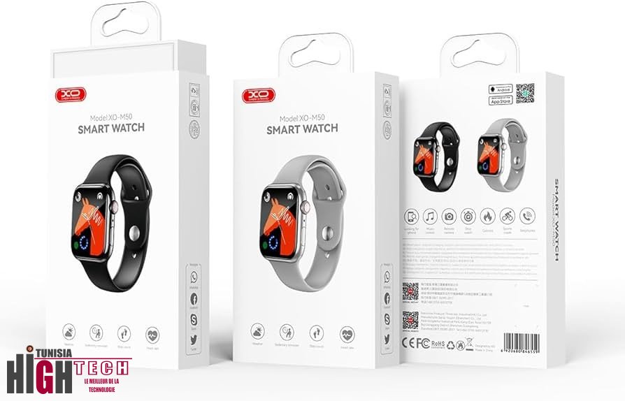 La XO M50 est une montre connectée alliant technologie avancée et design pratique, idéale pour une utilisation quotidienne.