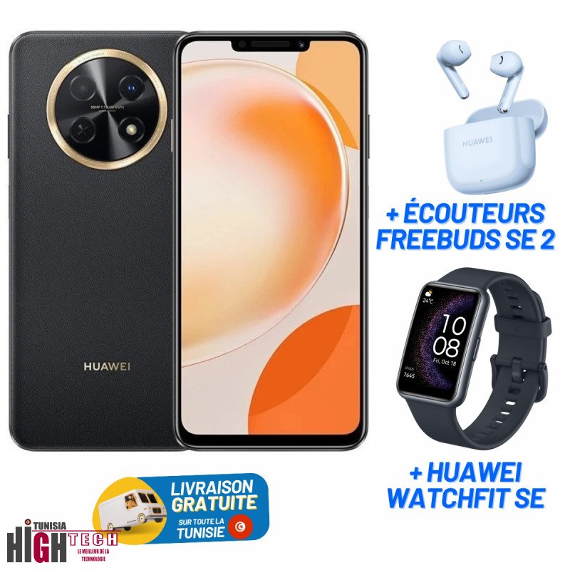Smartphone HUAWEI Nova Y91/ 4G / 8 Go / 256 Go / Noir + Ecouteurs Bluetooth Huawei Buds SE2 + Huawei Watch Fit SE